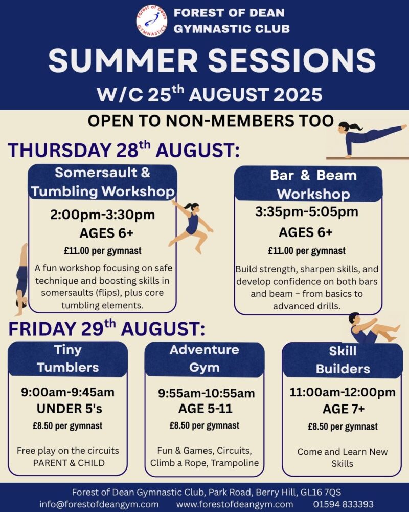 Click the link to book: https://app.classmanager.com/pay-as-you-go/forest-of-dean-gymnastic-club